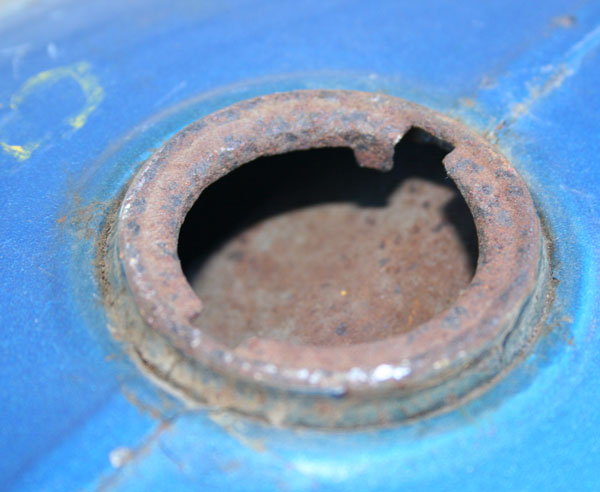 There is a lot of rust in the tank and on the outside. The first thing to do is remove all that old paint which is hiding even more rust. I use paint stripper … this is a good way of removing the paint, it is cheap to do and quite safe with no chance of panel damage. On the other hand, it can be quite messy and can be time consuming.Of course, you can take it to a paint stripping company or have it bead/sandblasted. But we are staying with a do-it-yourself theme here.