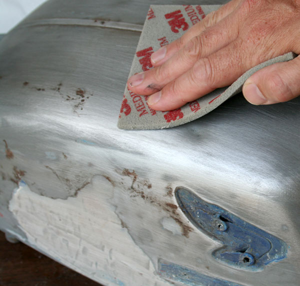 I used a few basic tools … the best being sandpaper and elbow grease. You want to avoid power tools if possible because any excessive heat generated by the power tools could distort the panels on the tank.